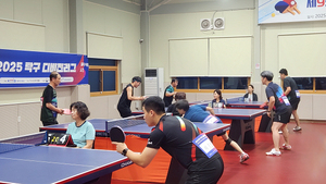 [직썰 / 안진영 기자] ‘2025 탁구 디비전리그 대구 본선’이 지난 8일부터 9일까지 대구 시민운동장 다목적체육관에서 성황리에 열렸다. 8일에는 여자부, 9일에는 남자부 경기가 진행됐으며, 약 150명의 생활체육 탁구인들이 참가했다. 본선 결과 각 리그별 우승팀이 탄생했다. T3 여자부에서는 참좋은T3여-A(정금주, 지귀송)가 우승을, T4 남자부는 신세계T4남(강진일, 이동경), 여자부는 수탁B(이순남, 이애리)가 각각 정상에 올랐다. T5 남자부 비타민탁구클럽(경원규, 김동규), 여자부 신세계T5여자(김민지, 장소윤)가 우승