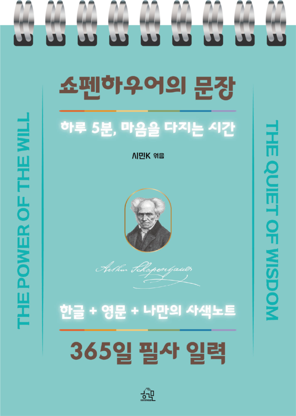 책에는 그의 저작 '의지와 표상으로서의 세계' 등에서 발췌한 핵심 문장이 한국어와 영어로 나란히 수록돼 철학적 사유와 언어 훈련이 동시에 가능하다. 문장 뒤에는 “나에게 묻고, 스스로 다짐하기”라는 질문이 이어져, 읽는 데서 멈추지 않고 쓰고 생각하는 실천의 흐름을 만든다.